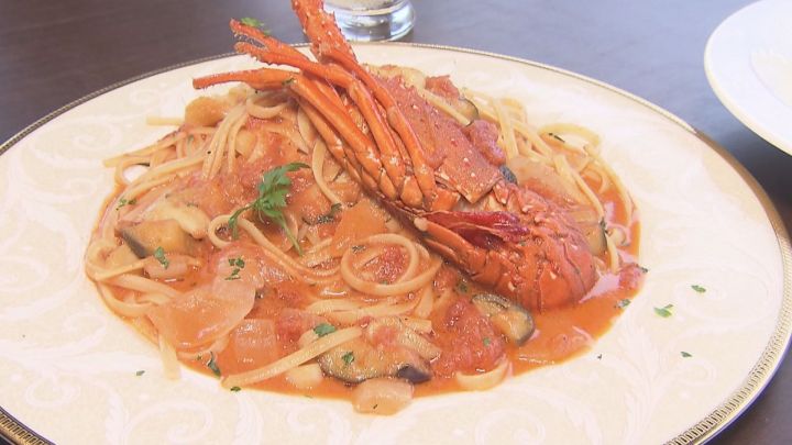 「伊勢エビを使ったパスタ、それと真珠店ならではということで、アコヤ真珠のアコヤ貝の貝柱と一緒にあわせて開発しました」