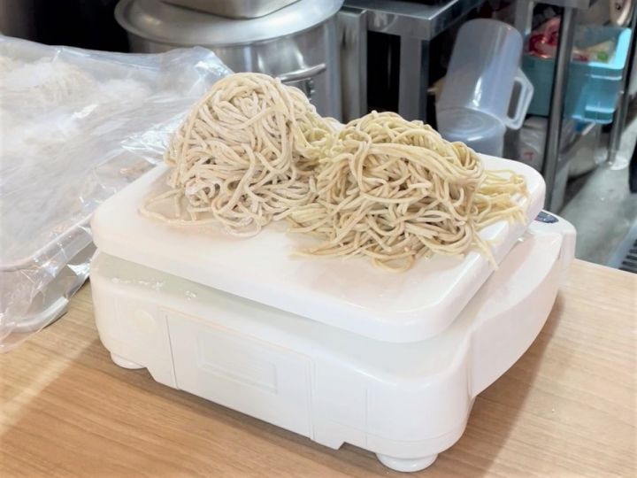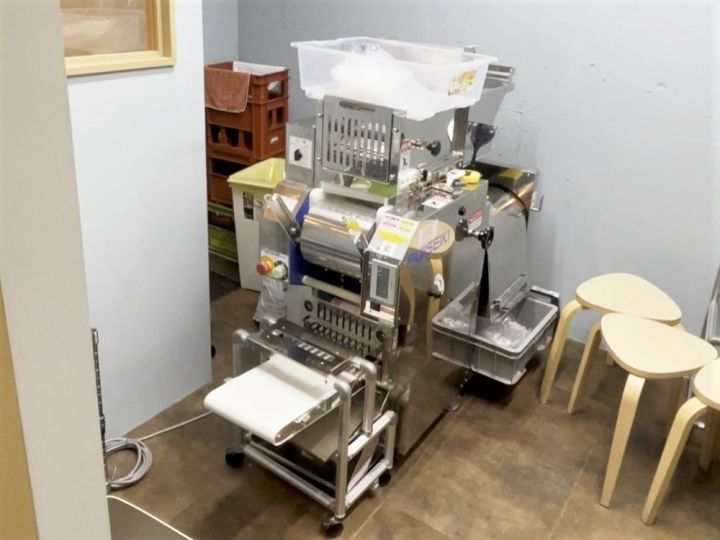 店の奥には「製麺室」があり、特注の小麦粉を使って毎日この部屋で麺が作られていますが、製麺機は「ガチ麺道場」の上野さんから譲り受けたものです。