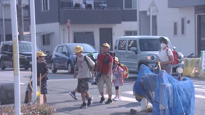 実験は、子供たちが夏休み前に入る前に行われました。午前8時前になると、集団登校する小学生の姿が多くなりはじめました。登下校する小学生や高齢者らが横断歩道を利用しています。