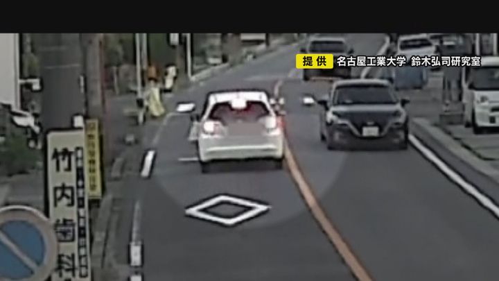 横断歩道での事故を防ごうと、名古屋工業大学の学生らが道路に“ペイント”をする路面標示をして、車に注意を促す実験を始めました。