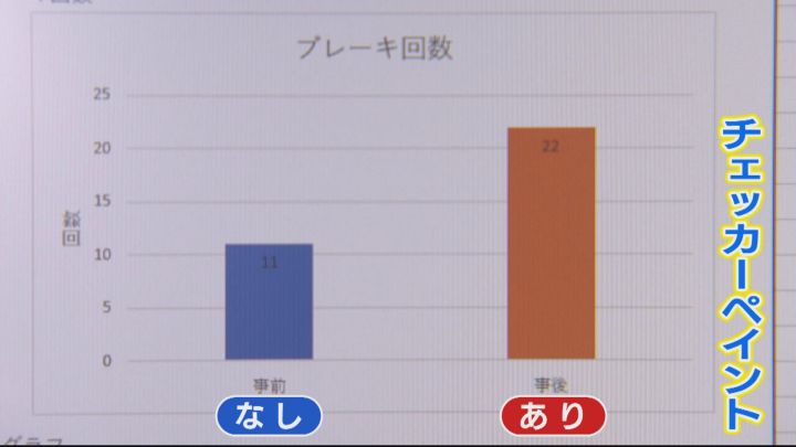 「明らかにチェッカーペイントの前でブレーキを踏んでいるので、意識しているのが確認できます」