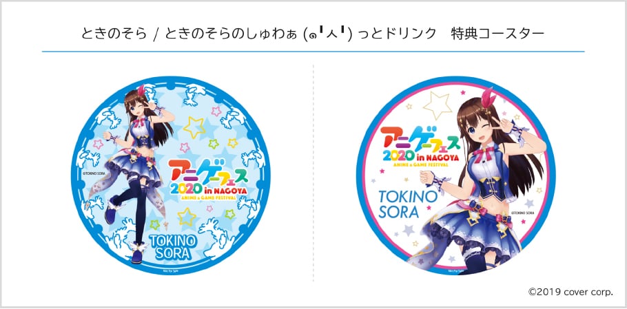 会場内アニゲーCAFEにて、VTuberとの限定コラボメニューをご注文いただいたお客様に、ドリンク1杯のご購入につき、商品ごとの特典コースターを2種類のうちからランダムで1枚プレゼントいたします!