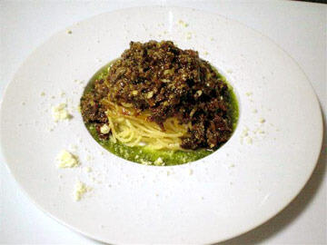 この日は"気まぐれパスタ"に、自慢のデミグラスソースを惜しげもなく使った「ボロネーゼミートソース」が登場。パスタの周りをグリーンのパセリソースが鮮やかに彩ります。