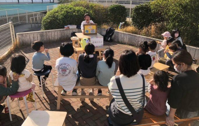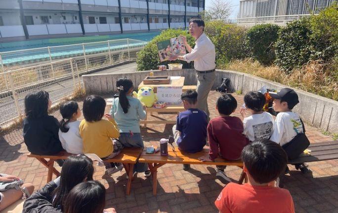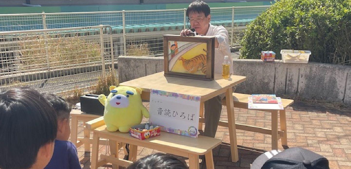 東海テレビ・音読ひろばの一環として、庄野アナウンサーが子どもたちに絵本や紙芝居の音読を披露。