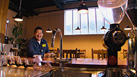 更には、金華山のふもとに位置する岐阜公園のすぐ近くにあるカフェでは、まるで映画のスクリーンのような大きな窓から金華山と岐阜城が見えると店主に伺い、ゆっくり振り返ると?!