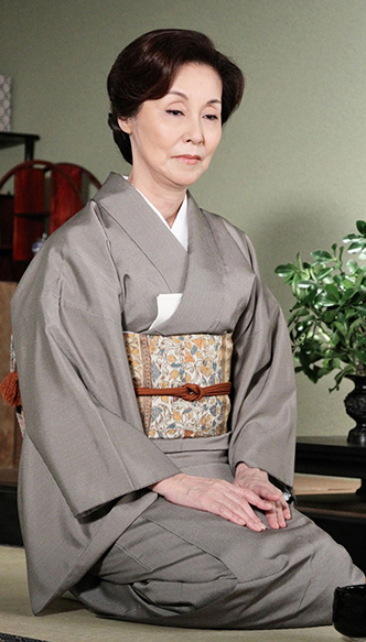 薄茶系の地に細かいチェック柄が施された塩沢の訪問着。