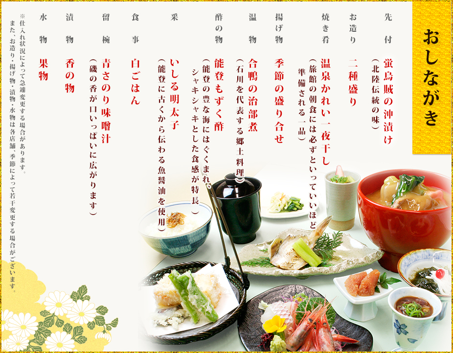 そこで第3シリーズの今回は、老舗旅館だからこその“おもてなしの心”をドラマ同様にお楽しみいただこうと、ロケ協力を頂いている「和倉温泉 加賀屋」のレストラン部門とコラボレーションを企画、期間限定の“おもてなしメニュー”をご用意いたしました。