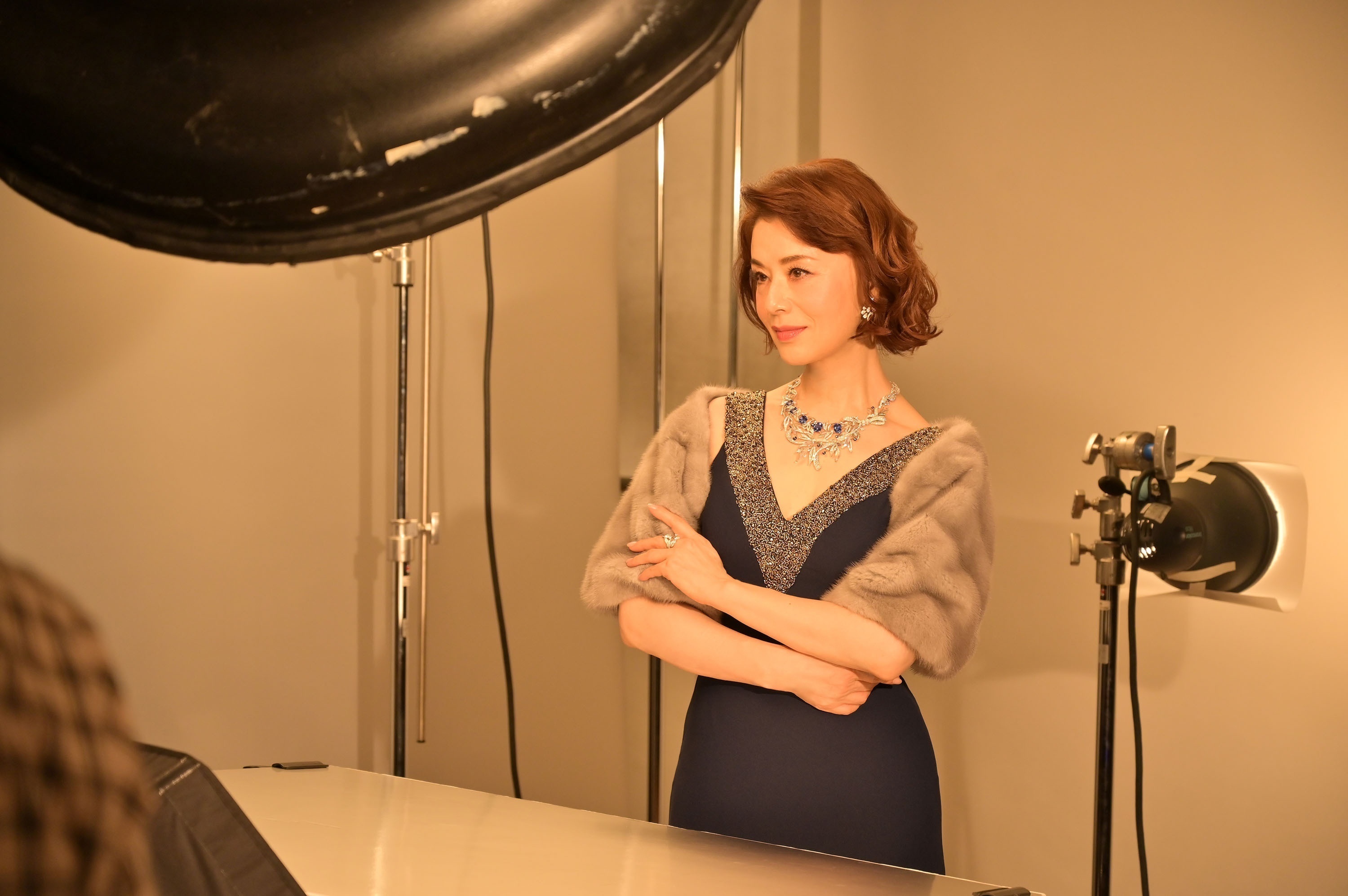 宝石を見た大地の第一声は「わぁ~、すばらしい!」。CHAUMETのスタッフが白い手袋をはめ「このネックレスは世界にひとつしかないオートクチュールで普段日本にはなく、今回撮影のためにフランスから取り寄せた」などと説明をしながら大地にネックレスと指輪をつけていく。素敵なファーとドレスも相まって、2点の宝石だけでも十分ゴージャス!そこにイヤリングを加えるか否かで迷う制作陣を前に、3点を身につけ鏡で確認する大地。「うん、いいね、ハルコさんだもん!」その太鼓判でGOとなった。
