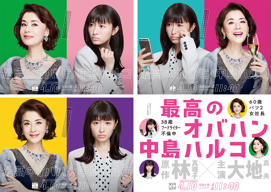 セレブオーラをバンバン放つ大地真央と、地味で頼りなさげな松本まりか。その対比に2人の役柄と関係性が一発で見えてくる。このポスターは、4月10日からスタートする大地真央主演・オトナの土ドラ「最高のオバハン 中島ハルコ」のメインビジュアルだ