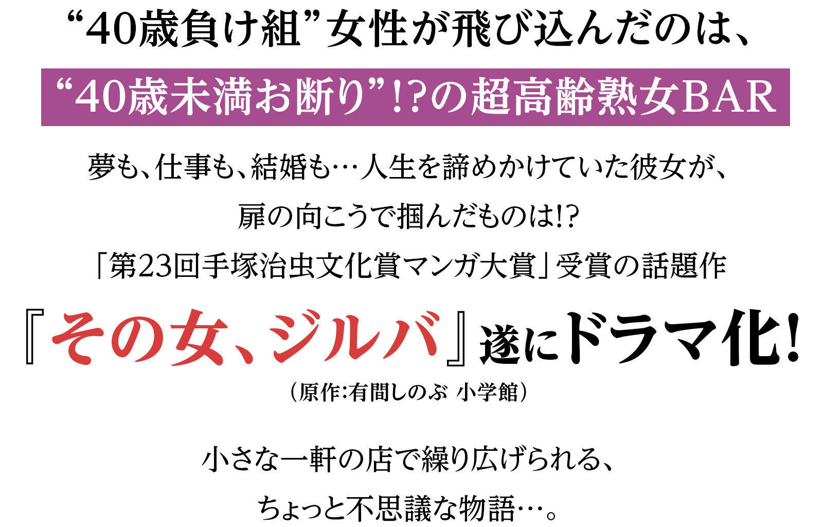 | 原 作 | 「その女、ジルバ」 (有間しのぶ、小学館「ビッグコミックス」刊) |