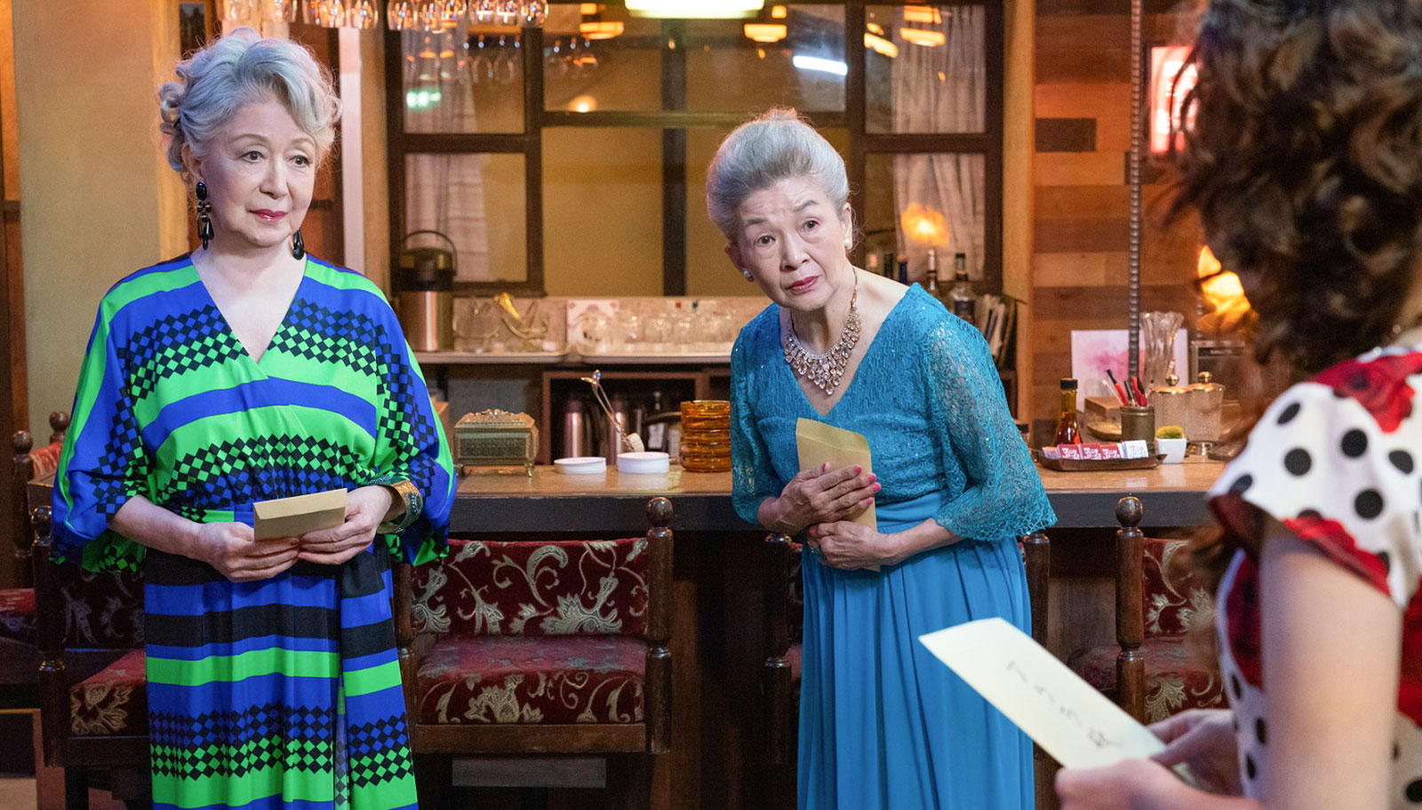 物語の重要な舞台となるBAR「OLD JACK&ROSE」のママ・くじらママを演じるのは、年齢を重ねてもなお輝きを増し続ける芸歴70年の大女優・草笛光子。現場では、ゴージャスなドレスをさらりと着こなし、BARのセットに入るその格好良さに共演者、スタッフも毎回見惚れるばかりという。