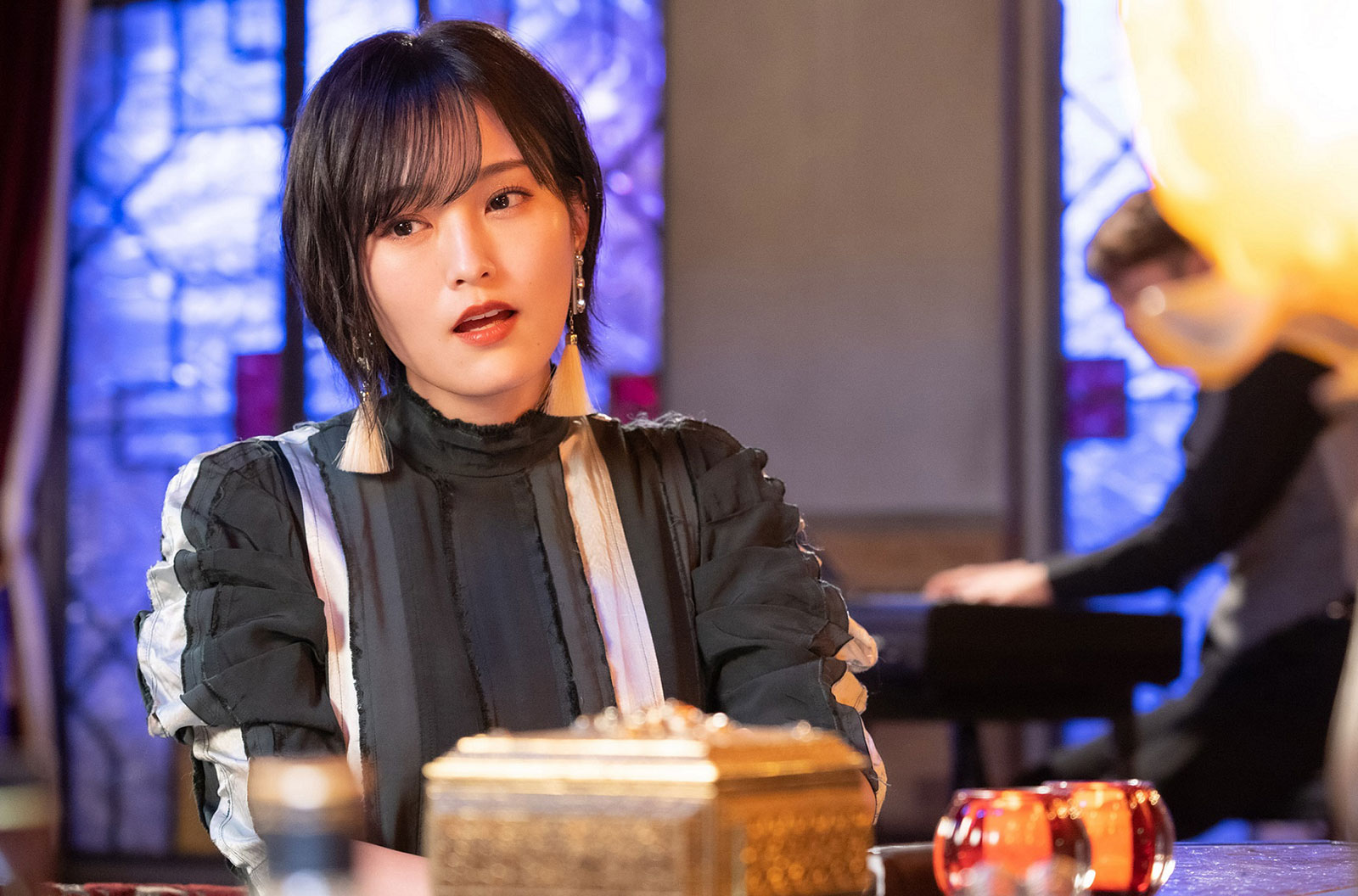 - 今回は原曲と違うアレンジで2パターン撮影したのですが、「『ドラマチックに乾杯』その女、ジルバ Vocal & Piano ver.」はとても大人っぽくて、私の楽曲の中では一番スローなテンポだと思います。普段はアッパーな曲調を歌うことが多いので難しかったのですが、落ち着いたセットの中で、熟女ホステスの皆さんならどうやって表現されるかも考えながら、少し大人な気分で歌わせていただきました。