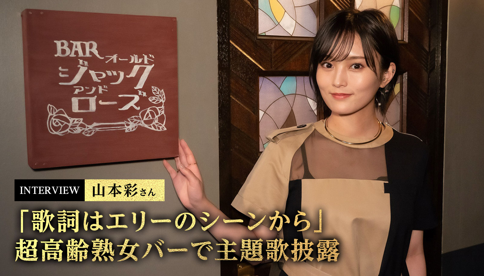 山本がスタジオを訪れたのは、今月初旬。超高齢熟女BAR「OLD JACK&ROSE」の舞台に、パーカッション、ウッドベース、ピアノなどが並ぶと、ホンモノのクラブハウスと見間違うほどだ。山本はBARの雰囲気に合わせて艶やかなドレスをまとい、原曲とは違うスローテンポなアレンジの楽曲をしっとりと歌い上げた。