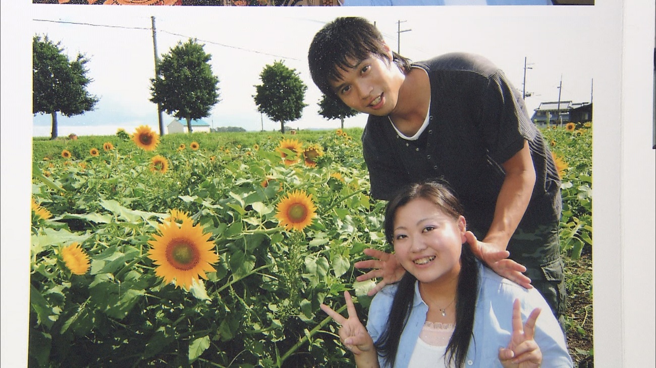ひまわり畑で写る息子と恋人