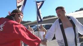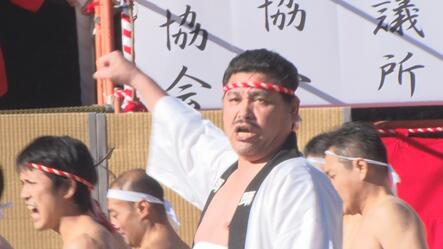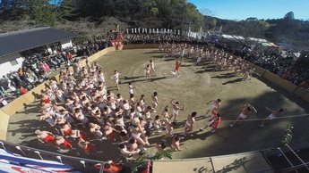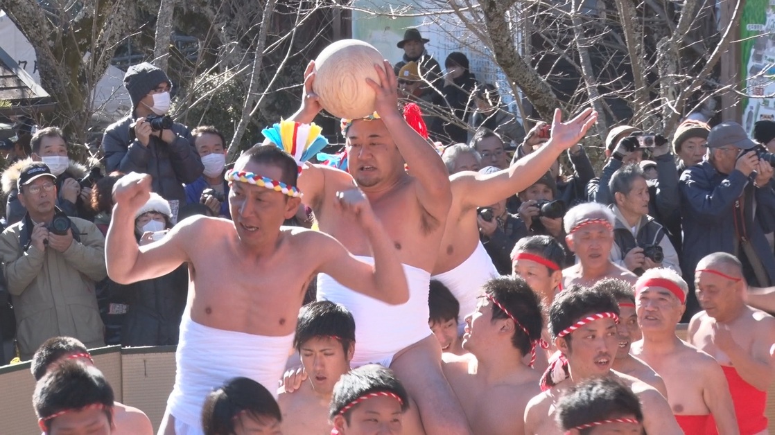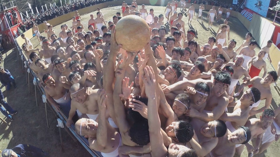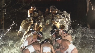 裸祭りで、見所は水玉を守る赤と、奪う白に分かれ