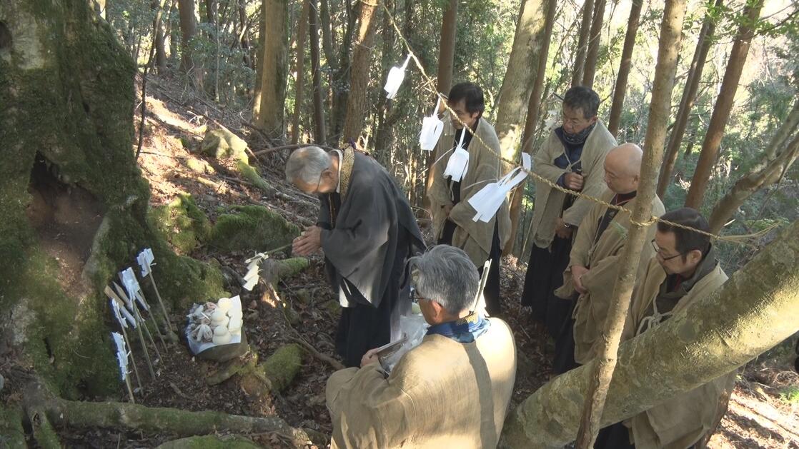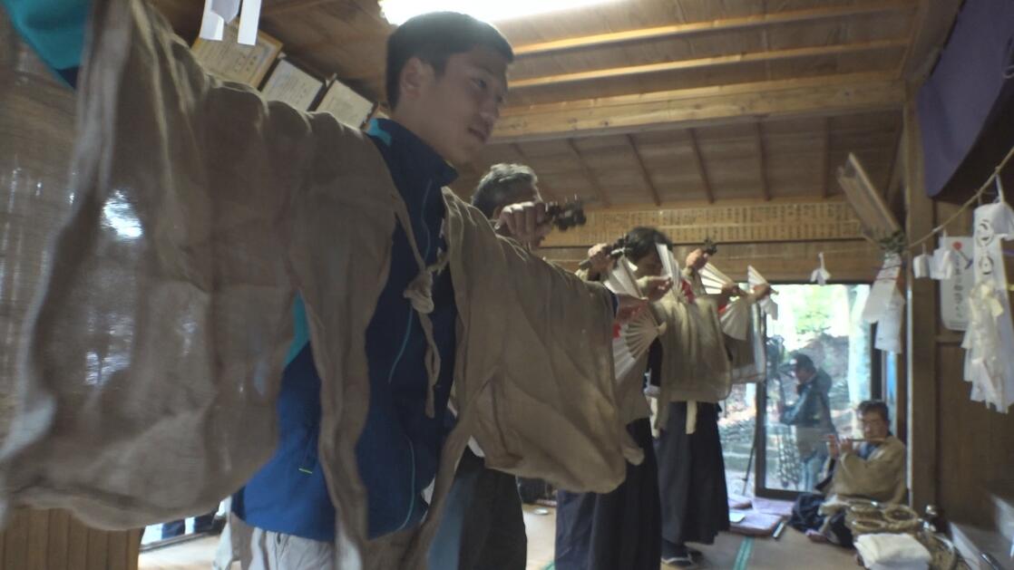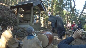 険しい権現山の頂上で1時間もの舞を奉納し、