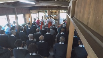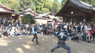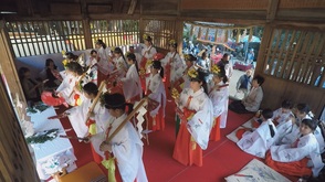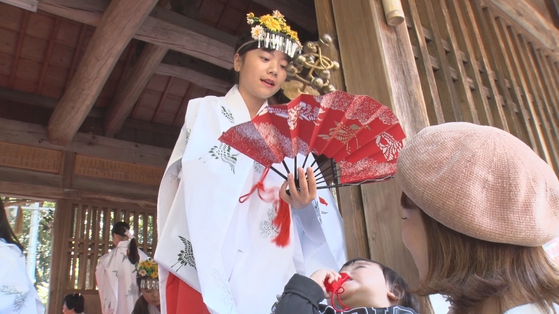 神話に起源を持つ伝統文化、巫女舞を奉納する。
