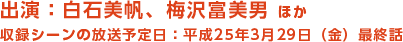 | 時 間 | 撮影所要時間:午前8:00~午前10:30 集合時間:午前7:00~ |