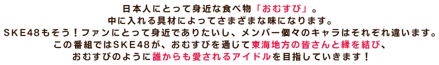 今回のSKE48むすびのイチバン!は、2018年数々の美女を世の中に輩出している愛知県で、文化祭のLIVEに一緒に出演してくれる かわいい女子高校生をスカウト!スカウトに向かうメンバーは、チームS野島樺乃とチームKⅡ 江籠裕奈、大場美奈、古畑奈和の4人。生徒会のアイドルに、付き合いたてのカップル、吹奏楽部に剣道部や女子バレーボール部といった部活動中の女子高校生をスカウト!元気いっぱい、個性豊かな高校生にエキゾチック美少女や体育会系美少女などかわいい女子高校生が続々登場!文化祭のLIVEに集まるメンバーは果たして!?お楽しみに!