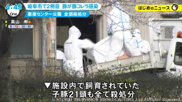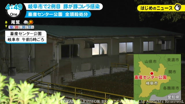 「午前5時過ぎです。こちら岐阜市畜産センターで飼育されている豚からも豚コレラの感染が確認されたことを受け、現在殺処分が進められています」
