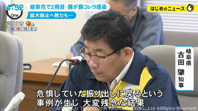 一部の地域では狩猟の解禁を見送るなど、様々な取り組みをしてきた中で起きた、今回の豚コレラ感染。岐阜県の古田知事は…。