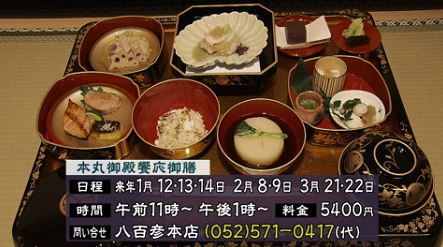 本丸御殿の完成を記念して再現された、この「饗応御膳」。来年1月から期間限定で提供されるということで、皆さんも、お殿さまの気分を楽しんでみてはいかがでしょうか。