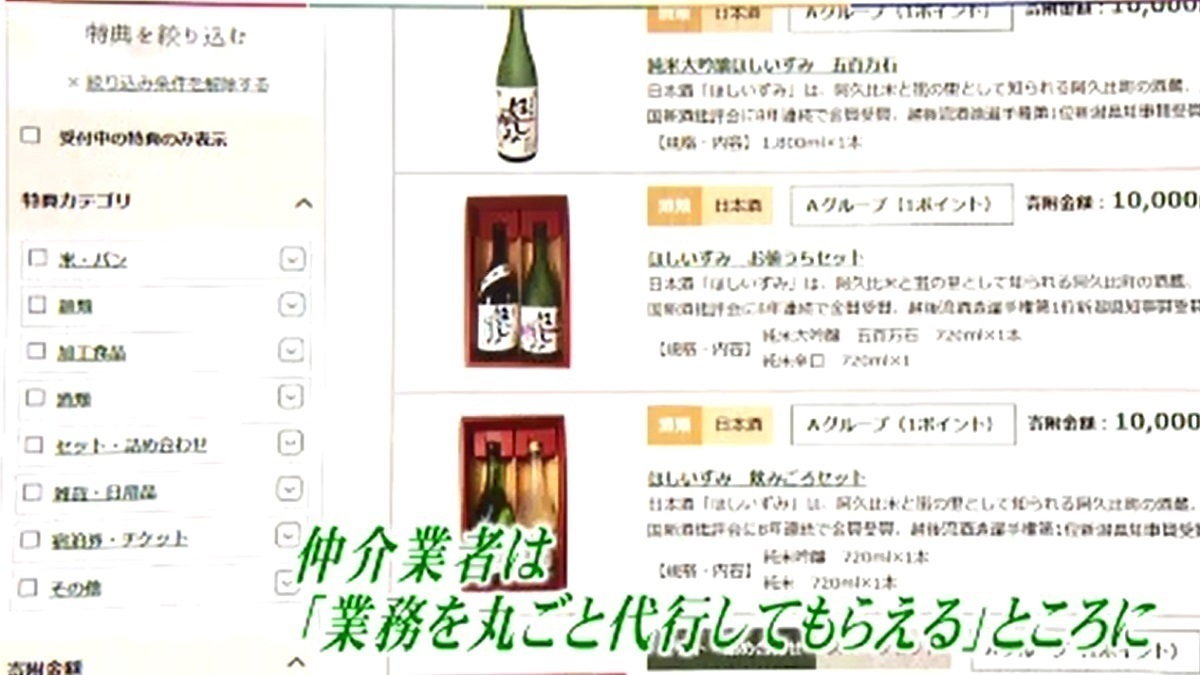 寄付金の約4割にのぼる仲介業者への支払い。それは、お礼の品の発掘や調達まで“丸ごと委託”しているためです。