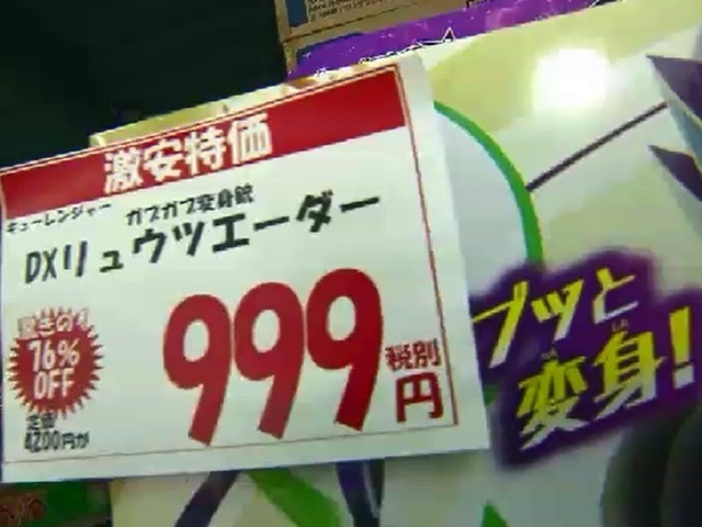 戦隊モノのテレビ番組のおもちゃコーナーでは、定価1400円の品が99円と93%オフのものも!さらに、「宇宙戦隊キュウレンジャー」のおもちゃは76%オフの999円。ちなみにテレビ放送は今年2月に終了していますが…。