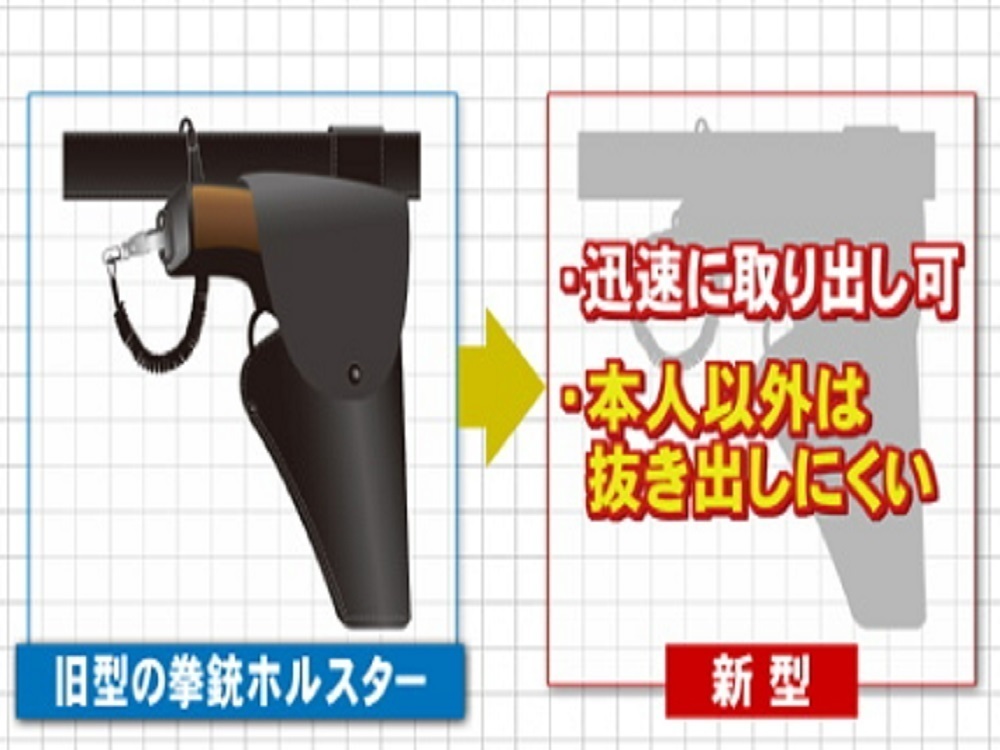 一方で、改良された新型ホルスターは、形状は具体的に明らかにされていませんが、従来よりも迅速に取り出しが可能となる一方で、『本人以外は抜き出しにくい構造』になっているということです。