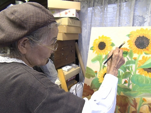 「(描いてるのは)庭に作ったひまわりですよ。きれいだから描いてあげた」