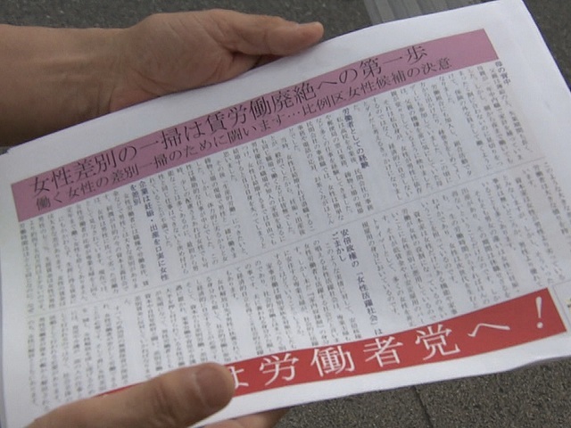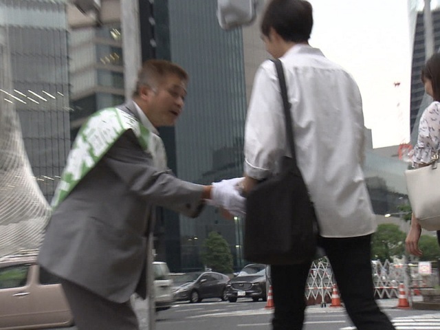 有権者に配ろうとしているのは小さな文字で埋め尽くしたチラシ。なかなか受け取ってもらえません。