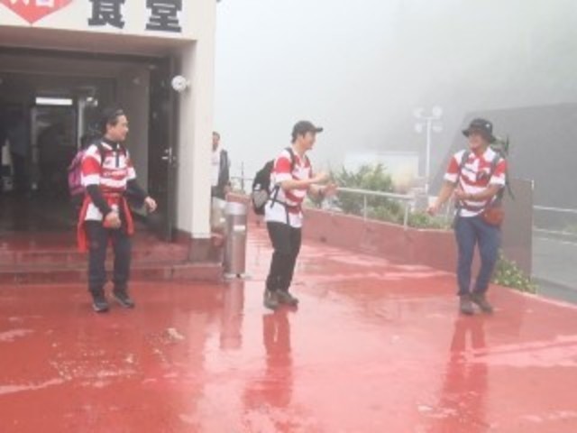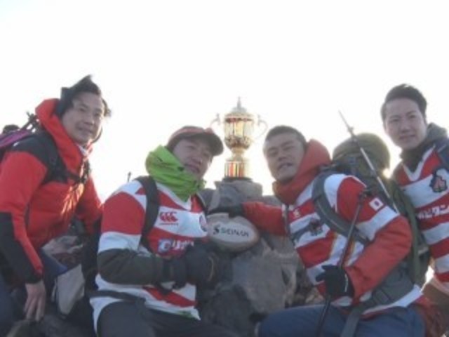 この日は、W杯のPRで優勝トロフィーのウェブ・エリス・カップも山頂を訪れていました。