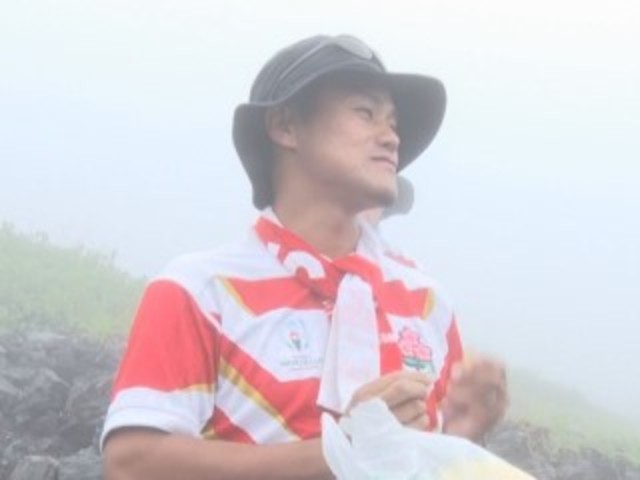 男性の名前は長澤奏喜さん(34)。今回のW杯を含む全8回の大会に出場した25の国と地域の最高峰の頂に、ラグビーボールをトライするという挑戦です。