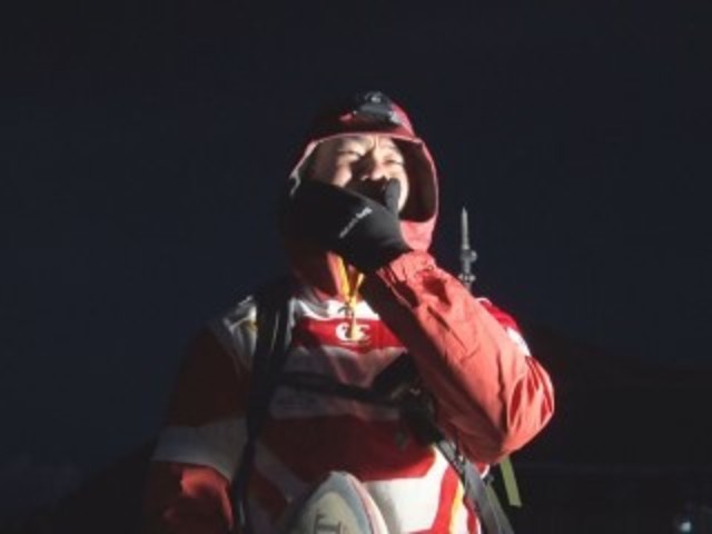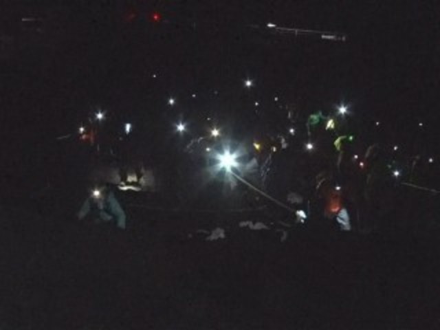 そして日付が変わり、日の出と共にトライするため、夜明け前に出発。暗闇のなか、一歩一歩踏みしめるよう進みます。