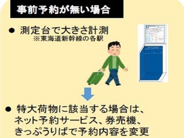 東海道新幹線の各駅には、測定台が置かれていて、乗車直前でも自分で荷物のサイズを測れることができるということです。
