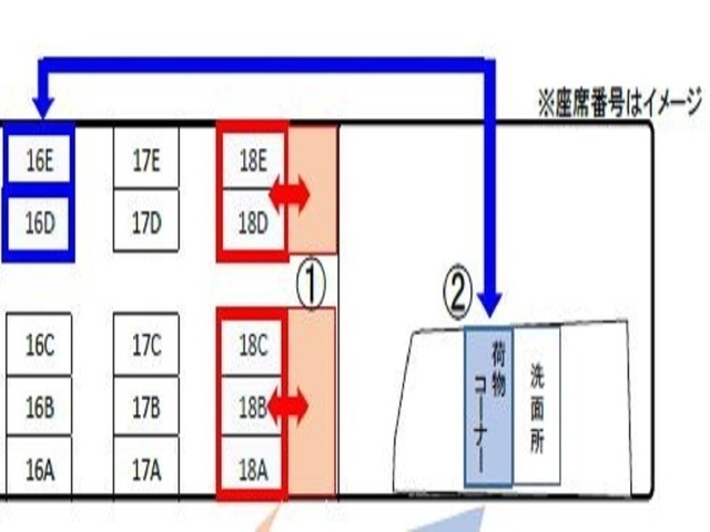 「荷物スペース」「荷物コーナー」ともに全ての車両に設置されるわけではなく、JRでは現段階ではどの車両に設置するかは未定としていますが、2017年度に特大荷物がどれくらい持ち込まれているか、サンプル調査を行ったところ、1列車につき、3~4個が平均的な数だったため、十分に対応できる置き場を確保できると見込んでいます。