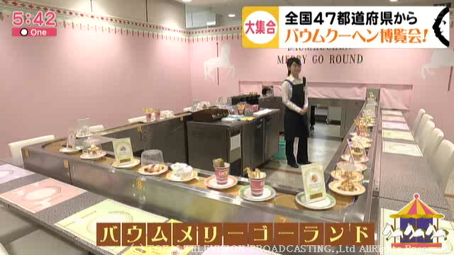 「お~回る。これバウムクーヘンなんですね!回転寿司みたいです」