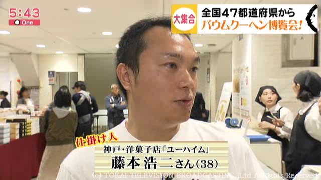 楽しみながら数々のバウムクーヘンと出会える今回の博覧会。手がけたのは、神戸の洋菓子店「ユーハイム」の広報担当で自らもバウムクーヘンの魅力に取りつかれたという藤本浩二さん(38)。