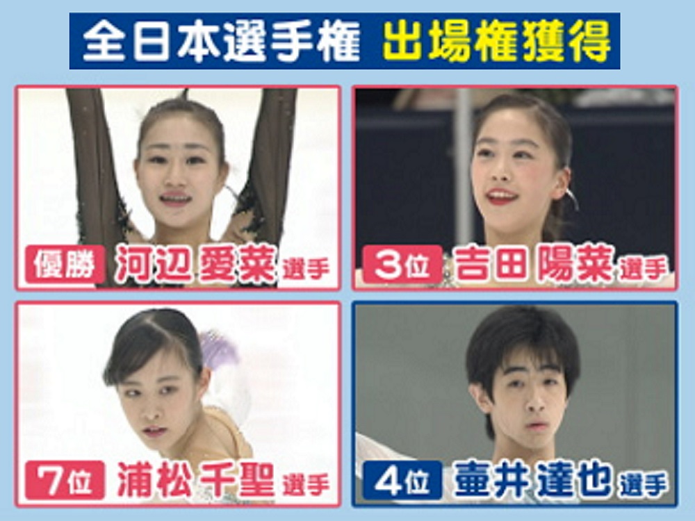 全日本選手権には、地元から河辺選手、吉田選手、壺井選手のほか、浦松千聖選手も出場を決めています。また、河辺選手は来年3月にエストニアで行われる「世界ジュニア選手権」の出場も決めています。