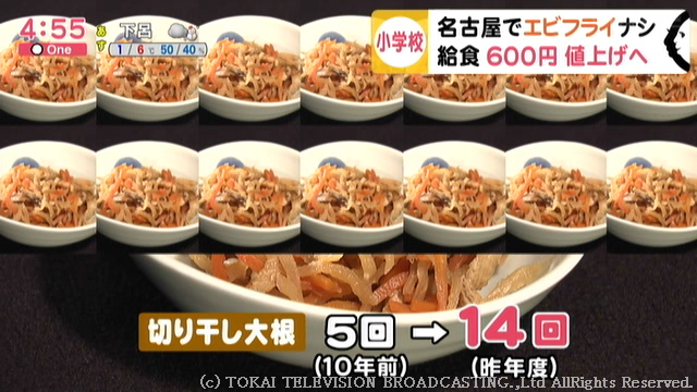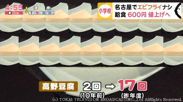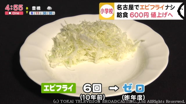 給食が質素になりすぎ…との指摘を受けてのことですが、実はここ10年で名古屋といえばのエビフライも給食から姿を消し、その一方で“あるおかず”が大幅に増えていました。シビアな実態があったのです。