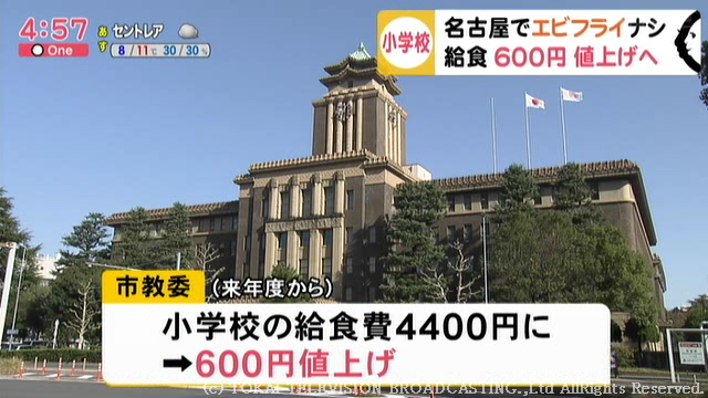 名古屋市教育委員会は来年度から食材費の高騰を受け、市立小学校の給食費を600円値上げし、4400円とすることにしました。
