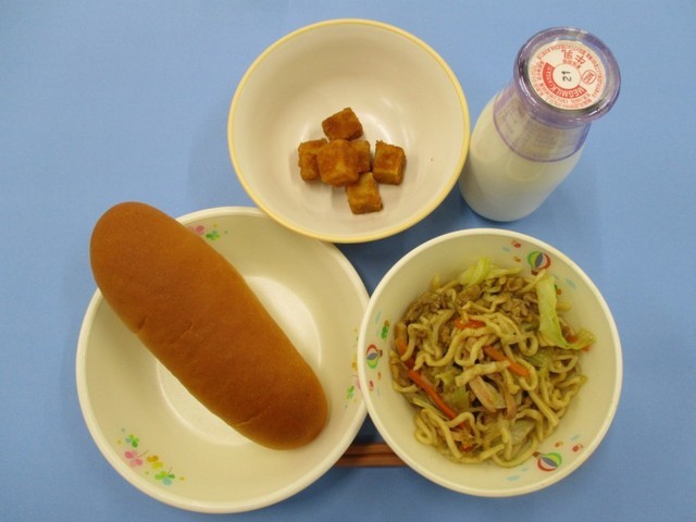 子供たちが楽しみにしているお昼の給食。5日のメニューは、米粉パンにコーンチャウダー、そしてじゃこと大豆の揚げ物。