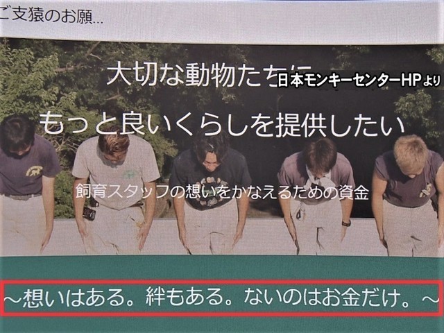 お金はなくても、サルに負担をかけたくない、そこでセンターが始めたのは、必要とするものの「寄付」です。