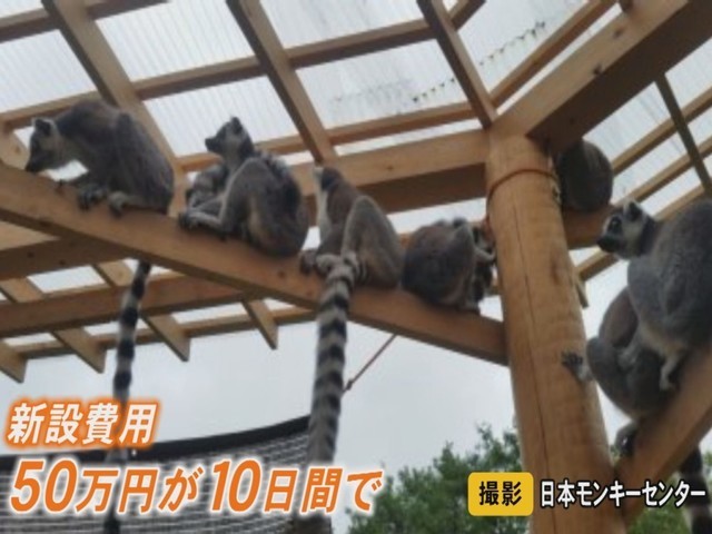 日差しや雨が苦手なワオキツネザルのために作った屋根。新設のための費用50万円が10日間で集まりました。