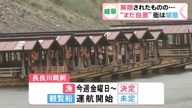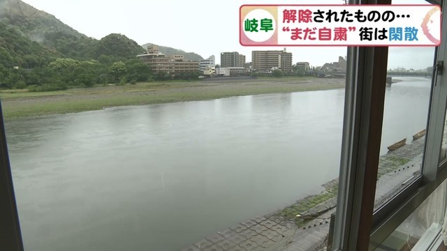 緊急事態宣言が解除されて、初めての週末を迎えた岐阜県。ただ、観光の目玉、長良川鵜飼の開幕も延期されたままで、賑わいは戻っていません。