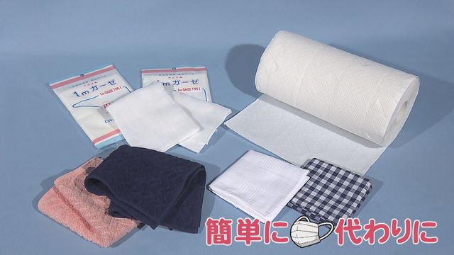 ガーゼやキッチンペーパーなどでも、簡単にマスクの代わりになり、しかも洗って繰り返し使うこともできるということです。