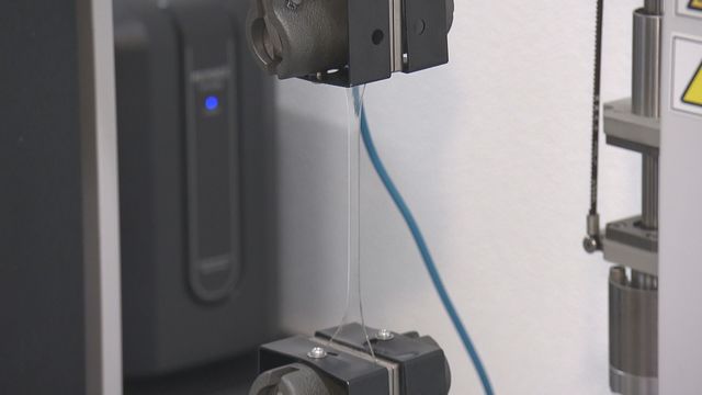 「柔らかくて伸びる素材です。いま1000%、10倍まで伸ばしているところです」