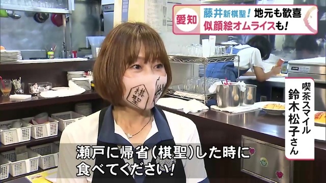 一方、市内の喫茶店では、オムライスにケチャップで器用に描いているのは「藤井新棋聖」の似顔絵。「棋聖」の文字もちゃんと入っています。