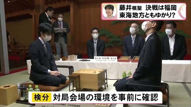 18日、福岡に入った藤井棋聖。午後3時ごろ、19日の王位戦第四局の会場で検分に臨みました。