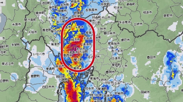 午前10時半までの1時間におよそ70ミリの非常に激しい雨が降ったとみられる稲沢市。